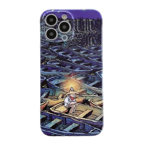 Caja de Teléfono para iPhone 13 Patrón de Pintura al Óleo PC Brillante (Barquero Solitario)