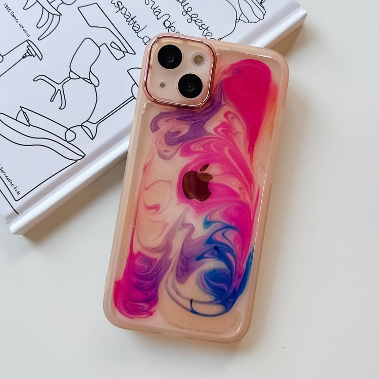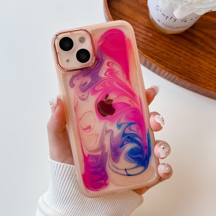 Funda para iPhone 13 Pintura al Óleo Galvanoplastia Caja del Teléfono TPU (Rosa)