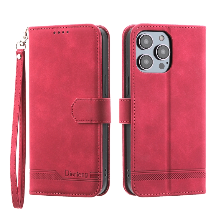 Funda para iPhone 13 Pro Dierfeng Dream Line TPU y Cuero PU (Rojo)