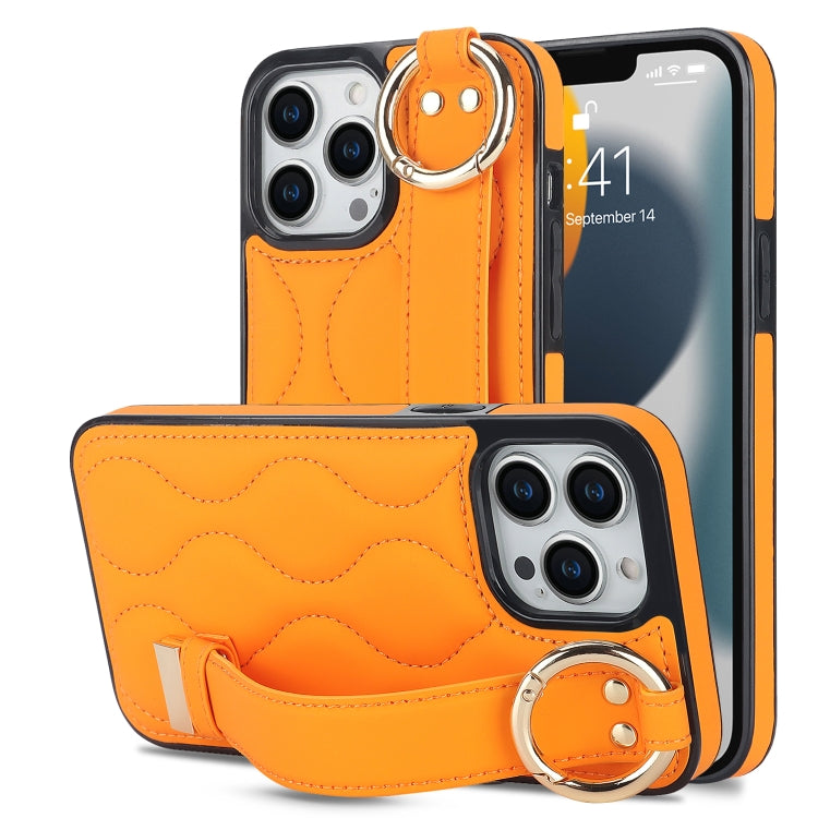 Pour iPhone 13 Pro Étui de téléphone en PU avec anneau de couverture complète antidérapant avec bracelet (orange)