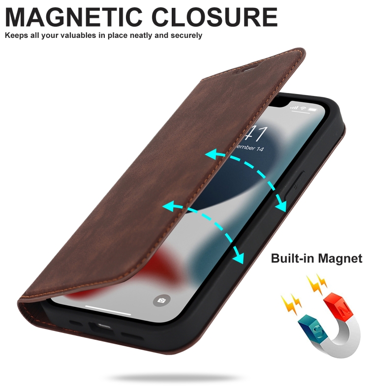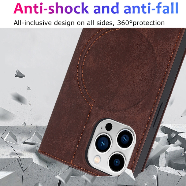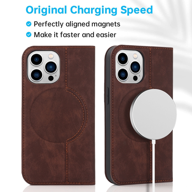 Funda de Teléfono iPhone 13 Pro Cuero Magsafe Carga Inalámbrica (Marrón)