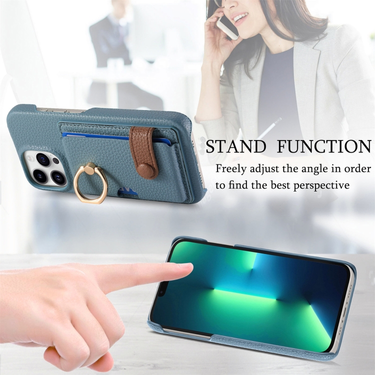 Funda para Teléfono iPhone 13 Pro Litchi Leather Oil Edge Ring Card Back (Azul Claro)