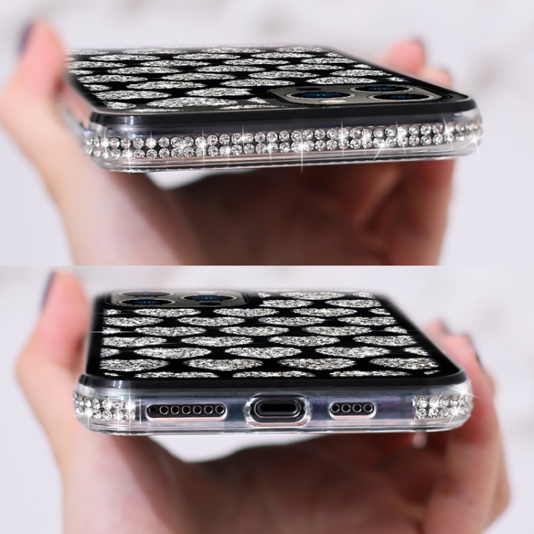 Funda para iPhone 13 Pro Love Hearts Diamond Mirror TPU Phone Case (Negro)