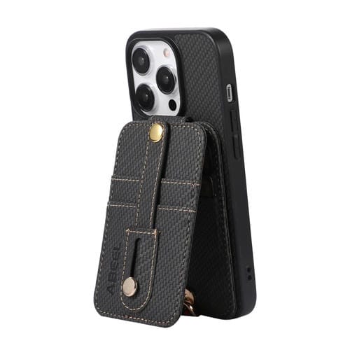 Caja de teléfono Abeel para iPhone 13 Pro Max con soporte de tarjeta RFID de fibra de carbono (Negro)