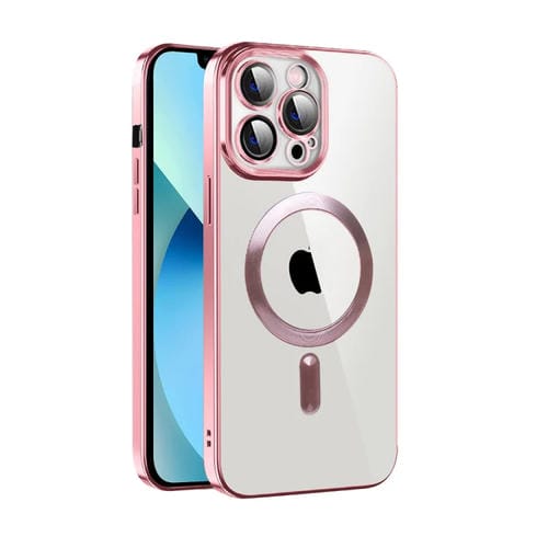 Funda para teléfono iPhone 13 Pro Max Cd Texture Plating TPU Magsafe con Película de Lente (Rosa)