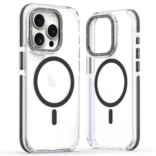 Pour iPhone 13 Pro Max Étui de téléphone hybride MagSafe en acrylique transparent bicolore (noir)
