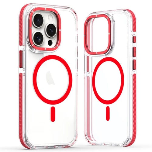 Pour iPhone 13 Pro Max Étui de téléphone hybride MagSafe en acrylique transparent bicolore (rouge)