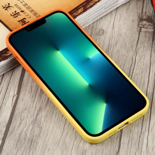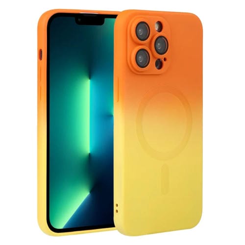 Funda para teléfono iPhone 13 Pro Max Liquid TPU Silicone Gradient Magsafe (Naranja Amarillo)