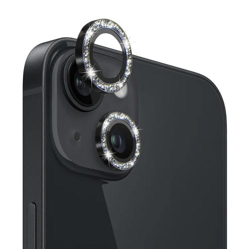 Protector de Lente de Cámara iPhone 14/14 Plus Northjo Vidrio Templado Bling Glitter Metal Ring (Negro)