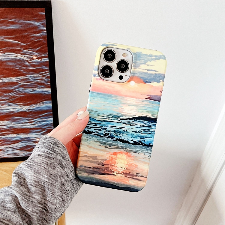 Estuche para teléfono iPhone 14 2 en 1 con patrón de mar y pintura al óleo desmontable (Amarillo Rosa)