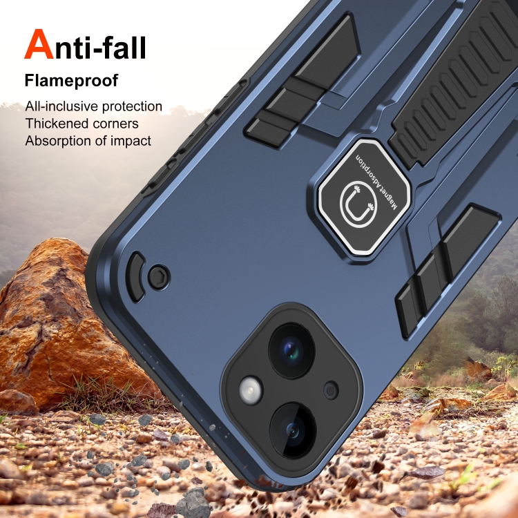 Funda para Teléfono iPhone 14 2 En 1 con Soporte a Prueba de Golpes (Azul)