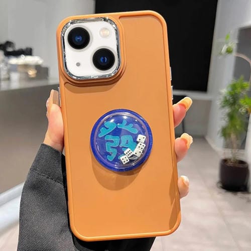 Anillo de Lente Electrochapado para iPhone 14 Funda con Dados (Marrón)