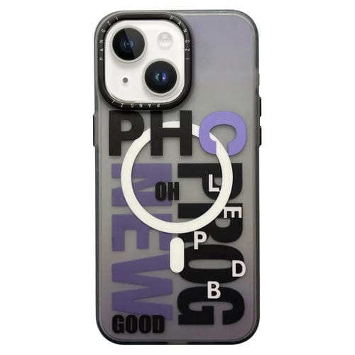 Estuche para Teléfono iPhone 14 Imd Magsafe Esmerilado Doble Capa (Letras Degradadas Moradas)