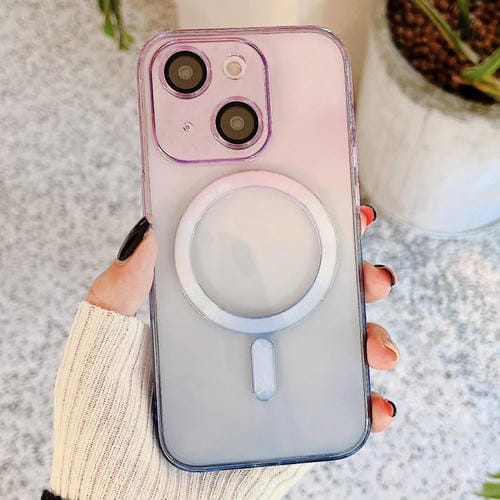Funda para iPhone 14 Magsafe Magnetic TPU con Caja de Teléfono Degradado Acrílico (Azul Púrpura)