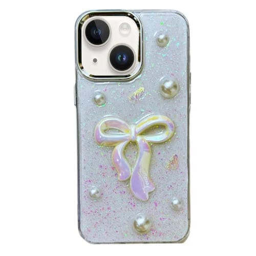 Funda para Teléfono iPhone 14 Plus TPU 3D Bow Pearl Love Flower (Lazo de Perlas)