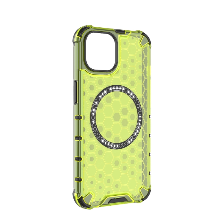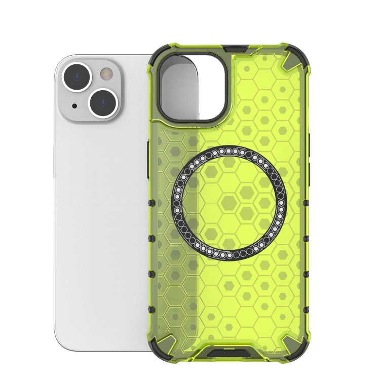 Funda para Teléfono iPhone 14 Plus con Anillo Magnético en Forma de Panal a Prueba de Golpes (Verde)