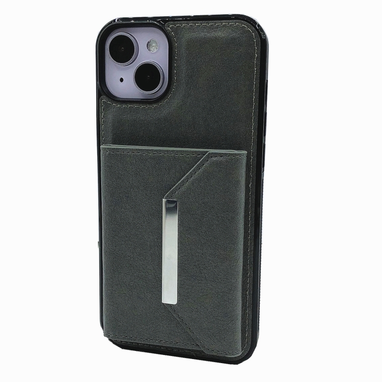 Funda para Teléfono iPhone 14 Plus con Bolsa y Ranuras para Tarjetas con Hebilla de Metal (Gris)