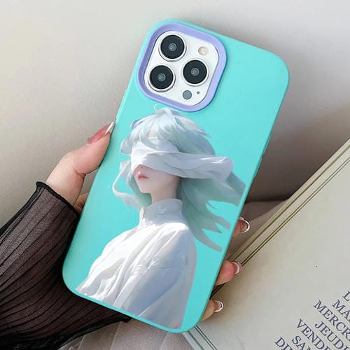 Funda híbrida para teléfono iPhone 14 Pro Max Blindfold Girl PC TPU (Cielo Cian)