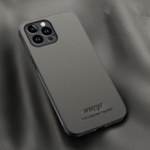 Pour iPhone 14 Pro Max HUIYI Étui de téléphone en cuir magnétique MagSafe (gris)