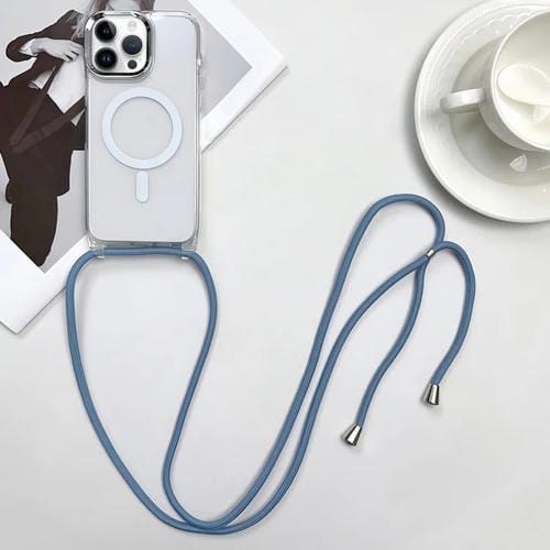 Pour iPhone 14 Pro Max MagSafe Magnetic PC + TPU Phone Case avec lanière (gris bleu)