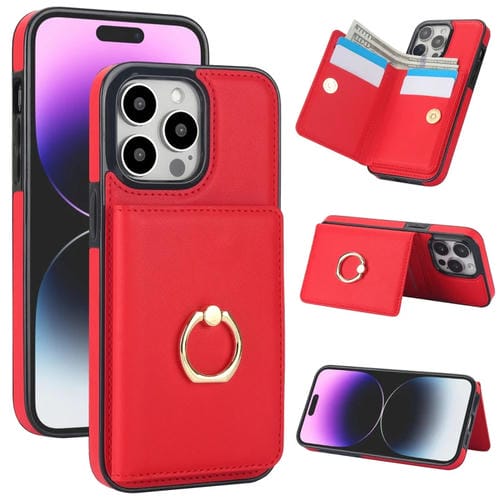 Funda para Teléfono iPhone 14 Pro Max RFID con Soporte para Anillo y Tarjeta (Rojo)