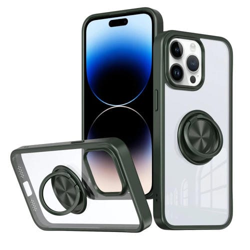 Funda para Teléfono iPhone 14 Pro Ring Holder PC Hybrid TPU (Verde)
