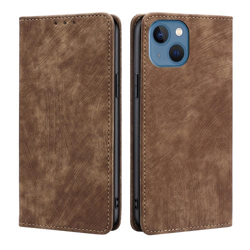 Pour iPhone 14 RFID Brosse antivol Étui de téléphone en cuir magnétique (Marron)