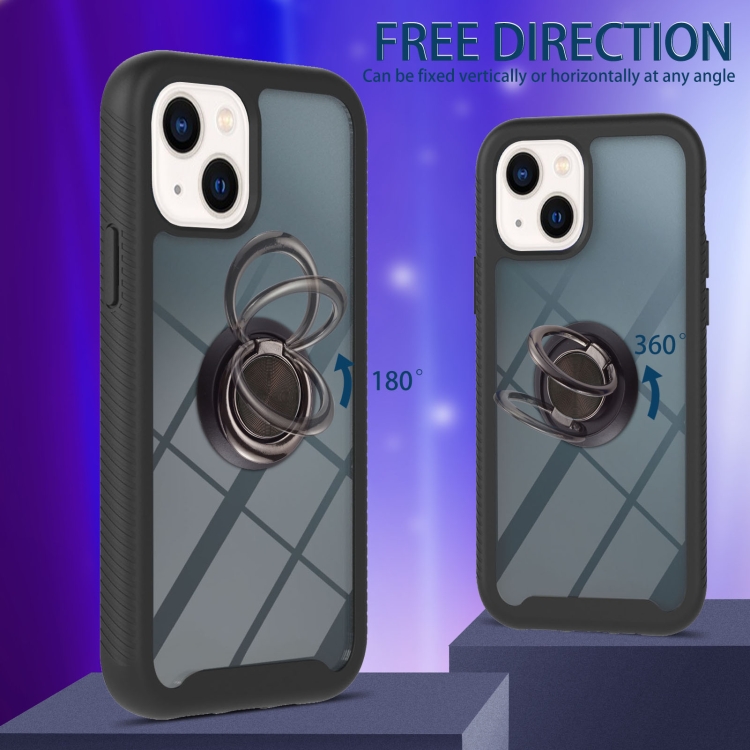 Funda para iPhone 14 Starry Sky Solid Color Series PC con TPU Soporte para Anillo y Función Magnética (Negro)