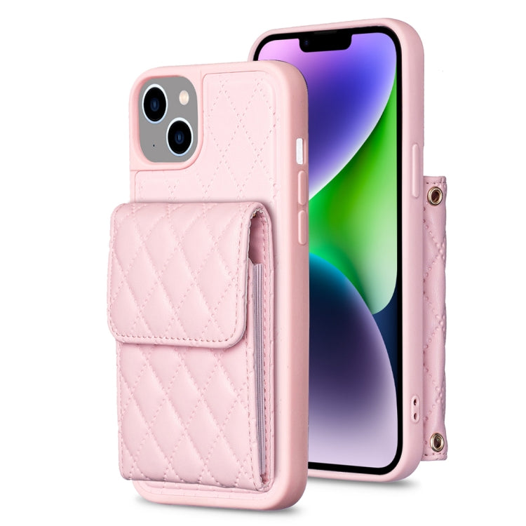 Pour iPhone 14 Étui portefeuille vertical en cuir rhombique (rose)