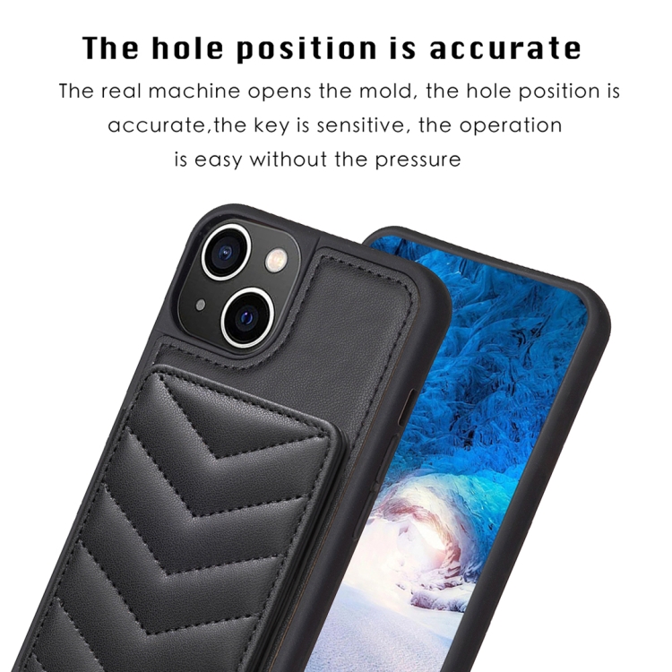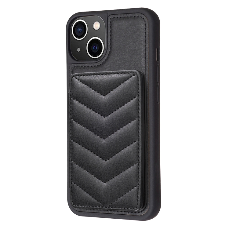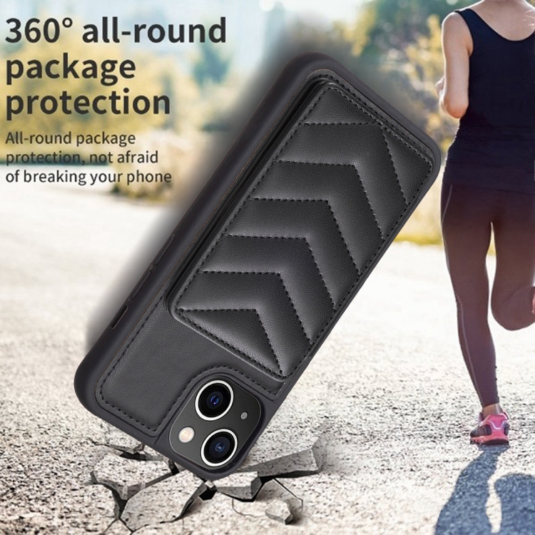 Funda para iPhone 15 Bf26 Wave Pattern Card Bag Holder Phone Case (Negro)