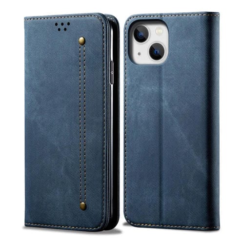 Funda para iPhone 15 Denim Texture Casual Style Cuero con Tapa Horizontal (Azul)