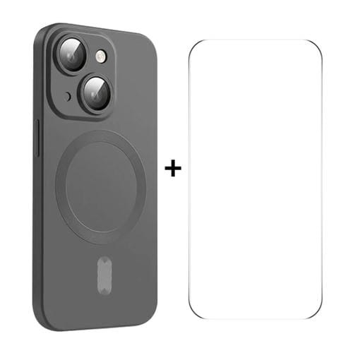 Funda para Teléfono Enkay Magsafe TPU para iPhone 15 con Película para Lentes y Vidrio para Pantalla (Gris Oscuro)