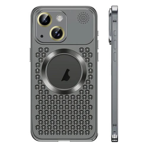 Pour iPhone 15 MagSafe Étui de téléphone d'aromathérapie en métal magnétique avec boucle à ressort (noir)