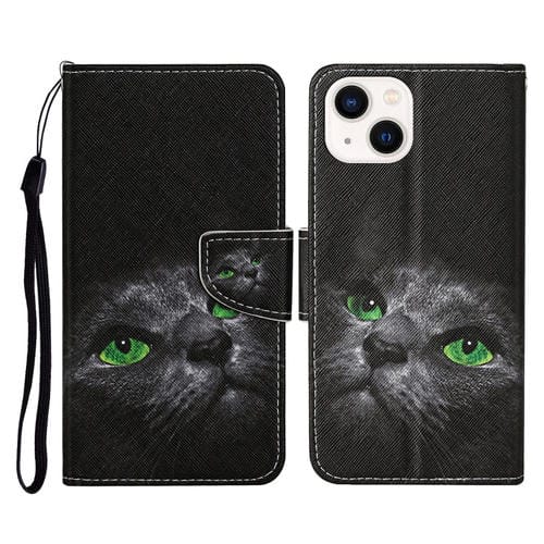 Estuche para Teléfono iPhone 15 con Tapa de Cuero y Dibujo 3D (Gato Negro)