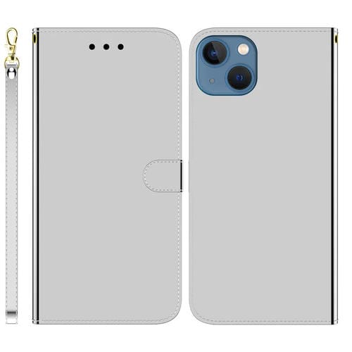 Estuche para Teléfono iPhone 15 Cuero con Superficie de Espejo Imitado (Plata)