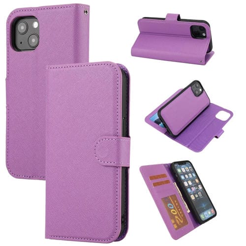 Funda para iPhone 15 Cuero Pu con Tapa Horizontal Desmontable Textura Cruzada (Púrpura)