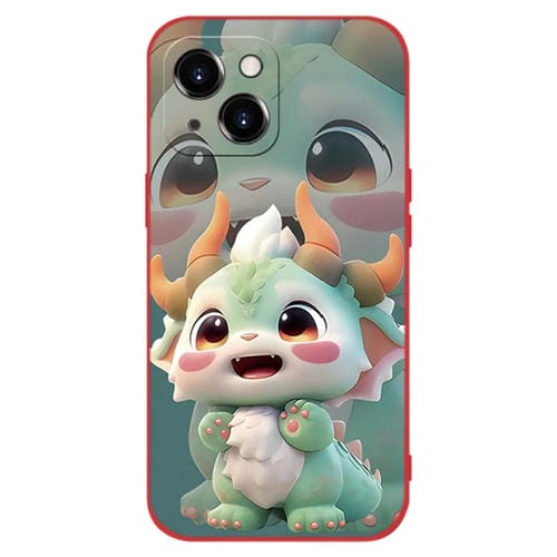 Pour iPhone 15 Étui de téléphone antichoc en silicone rouge du Nouvel An (Dragon vert)