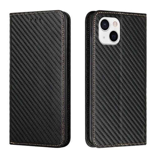 Funda de Teléfono iPhone 15 Cuero Soporte Textura Fibra de Carbono (Negro)
