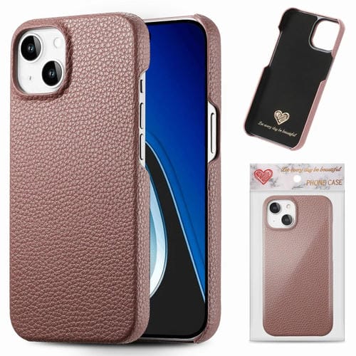 Funda para teléfono iPhone 15 con parte Trasera de cuero y borde de aceite Litchi (Albaricoque Azufaifo)