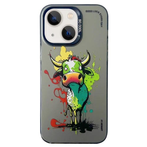 Funda para Teléfono iPhone 15 Serie Plateada Doble Capa Pintura al Óleo Buey del Zodíaco