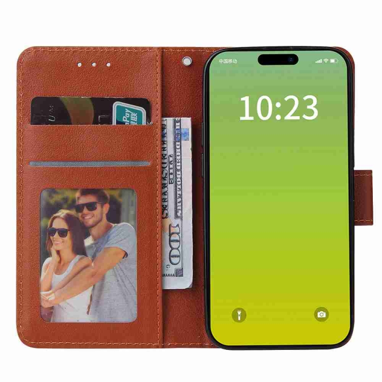 Funda para Teléfono iPhone 15 Cuero con Tapa Horizontal Multifuncional y Tres Ranuras para Tarjetas (Marrón)