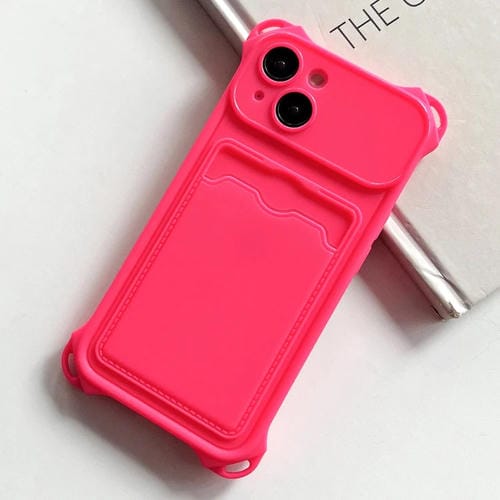 Funda para Teléfono TPU Esmerilado para iPhone 15 con Ranura para Tarjeta a Prueba de Golpes (Rojo Rosa)
