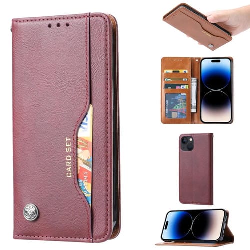 Funda de Cuero Knead Skin Texture para iPhone 15 con Tapa Horizontal (Rojo Vino)