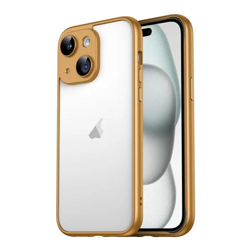 Pour iPhone 15 Macaron PC Phone Pure Edge Frame avec film de verre d'objectif (or)