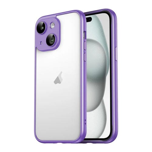 Marco de Borde Puro PC para iPhone 15 Macaron con Película de Vidrio para Lentes (Púrpura)