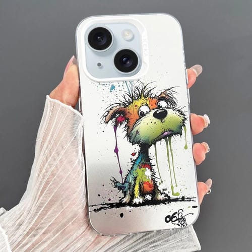 Funda para Teléfono iPhone 15 Plus Imd Animal Graffiti TPU y PC Doble Cara (Perro Naranja Verde)