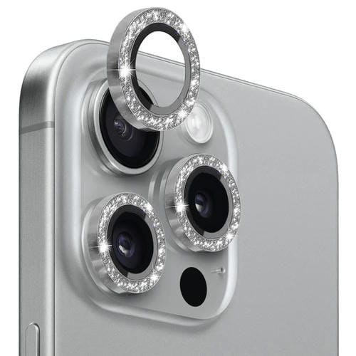 Pour iPhone 15 Pro/15 Pro Max NORTHJO Protecteur d'objectif d'appareil photo en verre trempé Bling Glitter Film d'anneau en métal (gris)