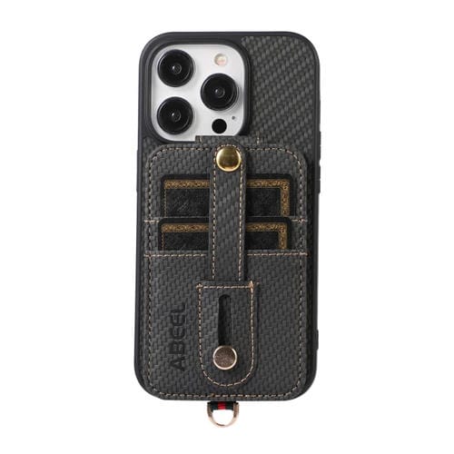Pour iPhone 15 Pro ABEEL Étui de téléphone avec porte-carte RFID en fibre de carbone (Noir)