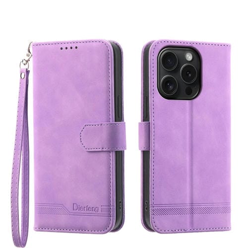 Funda para Teléfono Dierfeng Dream Line TPU + Cuero Pu para iPhone 15 Pro (Púrpura)