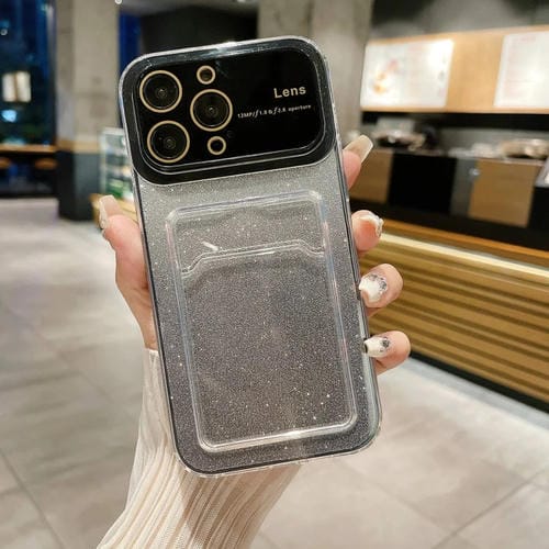 Estuche para Teléfono iPhone 15 Pro con Brillo Degradado Ventana Grande y Ranura para Tarjeta (Negro)